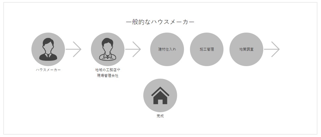 一部のハウスメーカーのように、自社で施工せず下請け工務店にすべてを委託するやり方では、お客さまの細かなご要望を反映するのが難しく、問題が発生したときの対処も不明瞭なものになりがちです。