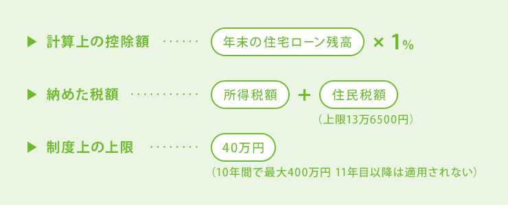 住宅ローン控除で戻る税額下記のうち最も低い金額(年額)