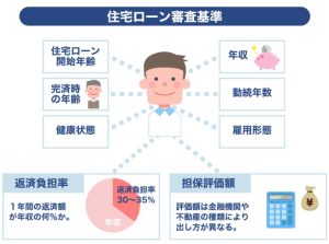 金融機関がローン審査で重視している項目 調査結果の上位10項目は? 1、 完済時年齢 2、 健康状態 3、 担保評価 4、 借入時年齢 5、 年収 6、 勤続年数 7、 連帯保証 8、 金融機関の営業エリア …